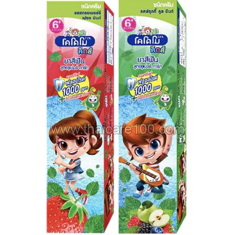 Детская зубная паста Kodomo Kids Toothpaste Super Guard (от 6 лет) Паста создана специально для детей старше 6 лет и обеспечивает комплексную заботу о растущих постоянных и молочных зубах. Содержит ультра-защитную формулу активного фторида и микрокальций, которые укрепляют эмаль и повышают её стойкость к повреждениям. Эффективно защищает от кариеса, препятствует размножению вредных бактерий в полости рта. Помогает сохранять зубы крепкими и здоровыми на этапе смены молочных зубов на постоянные. Имеет приятный клубнично-мятный вкус, который нравится детям. Объем: 65 г. Теги: тайская, зубная, паста